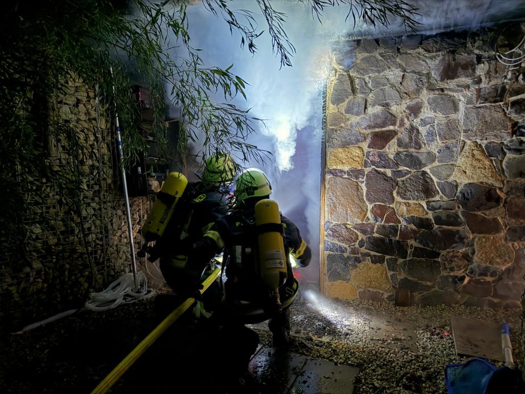 Zwei Trupps unter schwerem Atemschutz nahmen umgehend die Brandbekämpfung mit zwei C-Rohren auf. Durch das schnelle und gezielte Eingreifen der Einsatzkräfte konnte das Feuer rasch unter Kontrolle gebracht und ein Übergreifen auf angrenzende Bereiche verhindert werden.