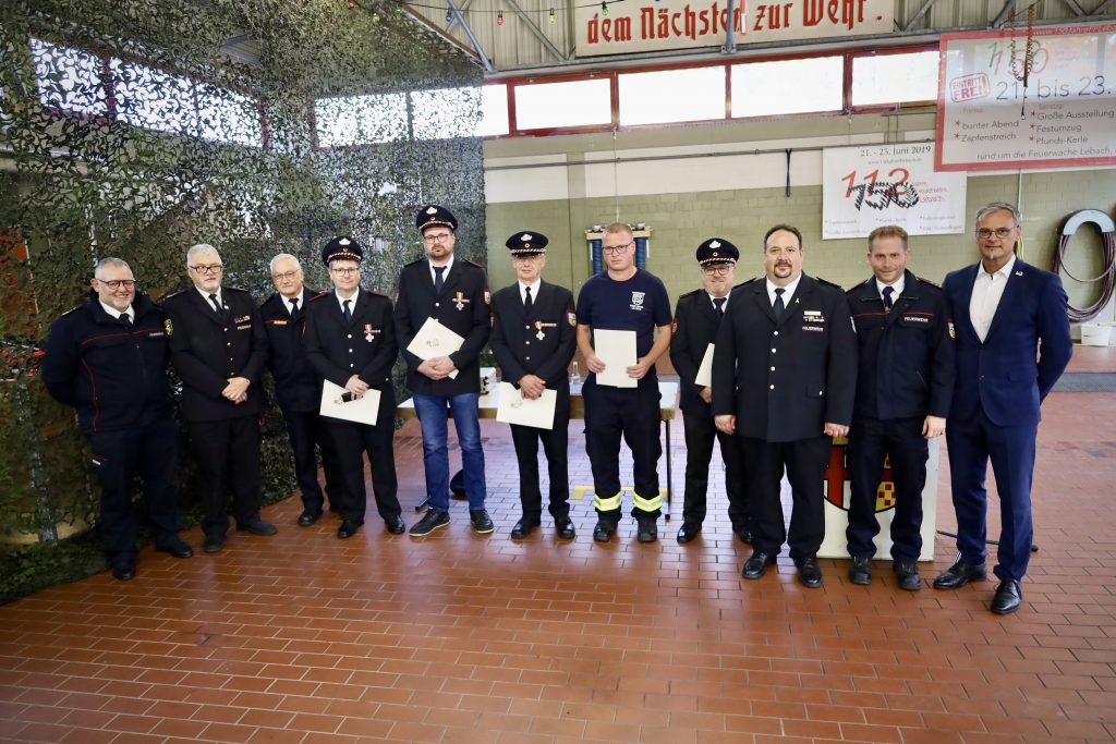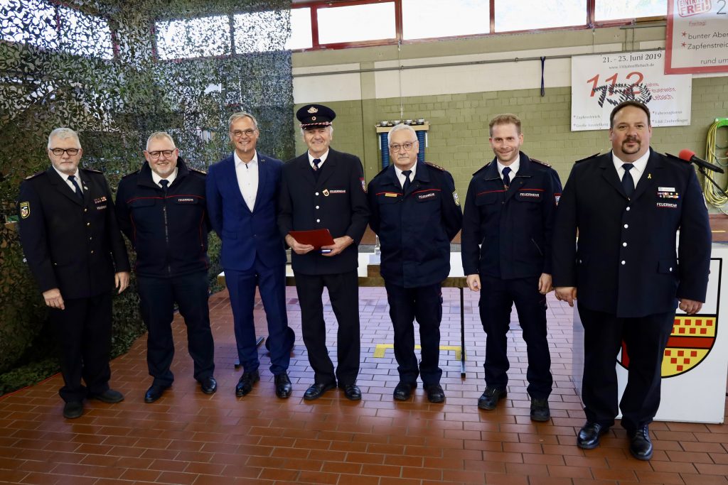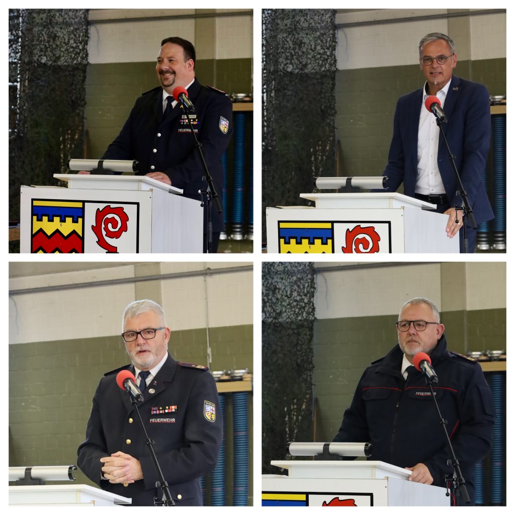 Die Leitung der Veranstaltung lag bei Wehrführer Sebastian Koch, der von seinem Stellvertreter Markus Lambert, Bürgermeister Klauspeter Brill, Kreisbrandinspekteur Bernd Paul, Kreisbrandmeister Carsten Gall, dem stellvertretenden Landesbrandinspekteur Heiko Schäfer sowie dem Vizepräsidenten des Landesfeuerwehrverbandes begleitet wurde.
