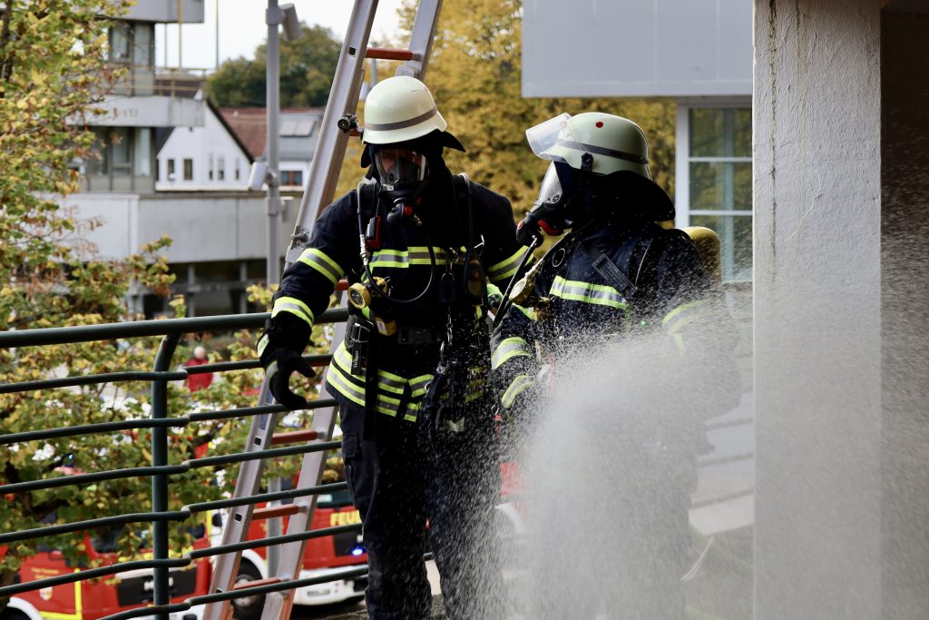 - Die Löschbezirke Dörsdorf und Steinbach führten eine Brandbekämpfung über tragbare Leitern auf dem Parkdeck am Markt durch.