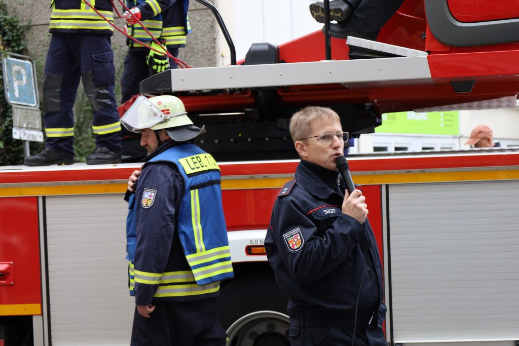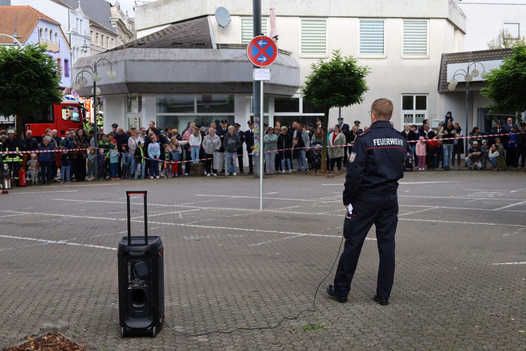 Bereits ab 14:45 Uhr versammelten sich zahlreiche Zuschauer, Ehrengäste und Vertreter der Stadt am neuen Festplatz in der Fußgängerzone, wo Michael Seifert die Übung moderierte. Von dort aus konnten die Besucher die einzelnen Einsatzabschnitte verfolgen.
